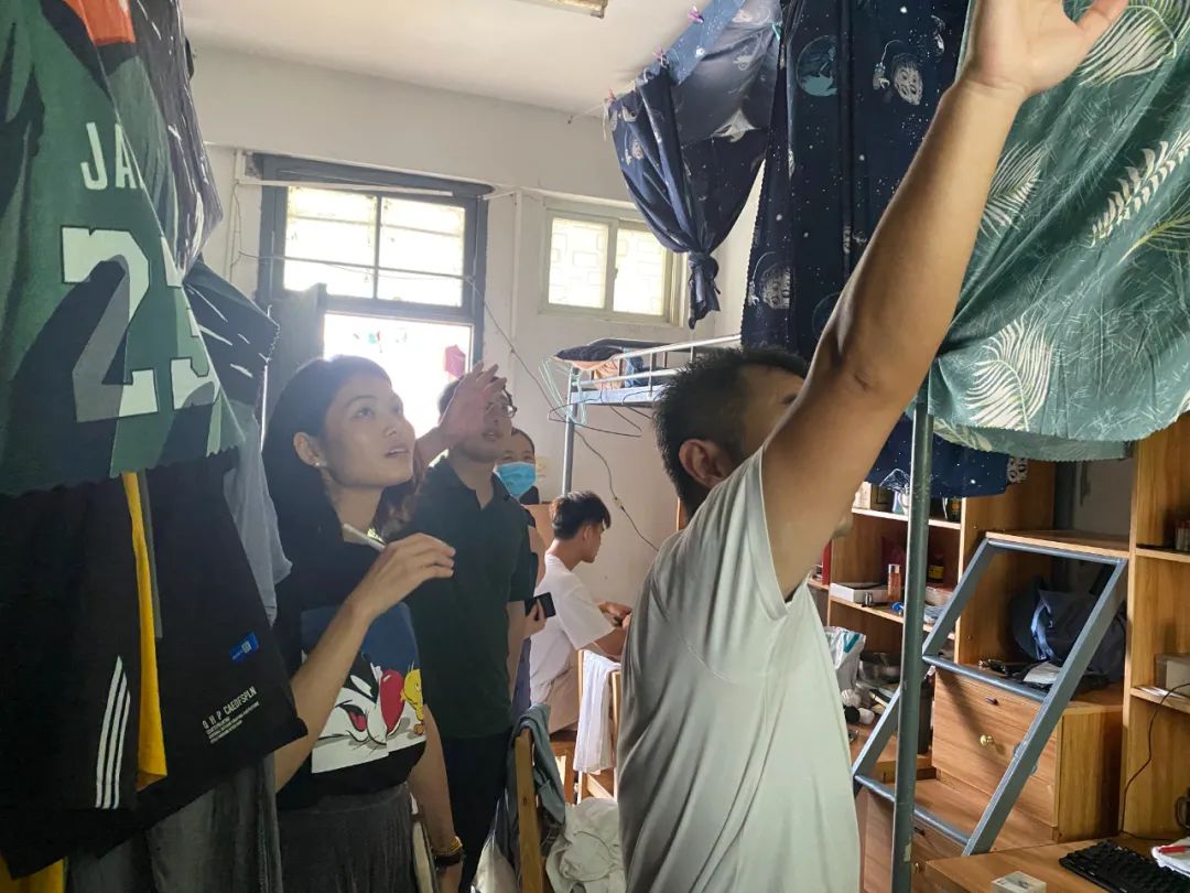 检查组对学生宿舍的消防通道、卫生环境、用电安全隐患等进行了全面细致检查。“空调制不制冷”、“宿舍有没有漏水”。检查过程中,符绩彰部长对我院学生表示亲切关怀,同时提醒学生注重整体的环境卫生、生活秩序和住宿纪律等,还要重视宿舍防火,消除安全,共建平安宿舍。刘萍男副书记对学生提出的宿舍故障问题进行详细的登记记录,并对学生反馈的报修难得问题,提出处理建议。同时她强调,各带班辅导员应深入展开所带班级自查工作,对四栋、八栋等重点问题宿舍落实整改监督工作。